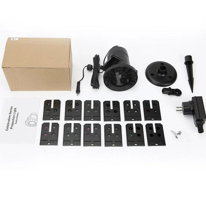 12 Patterns Christmas Snowflake Laser Light Snowfall Projector Outdoor Indoor Garden Laser Projection Light New Year Party Decor